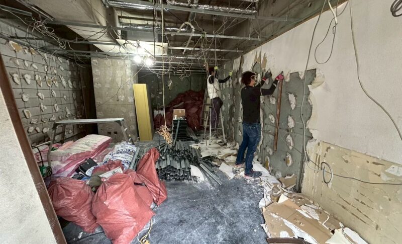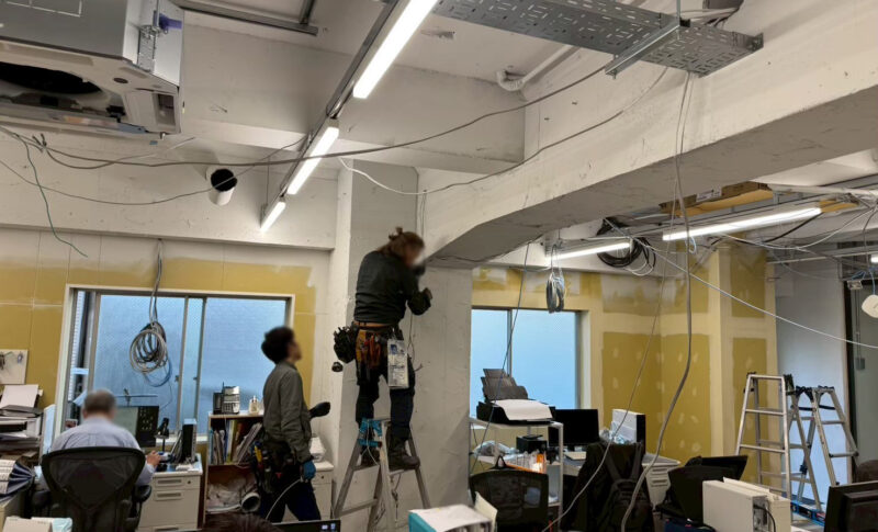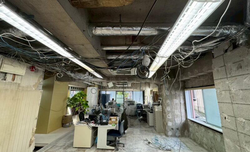 オフィス拡大リニューアル工事 マンション1Fにあるオフィスの全面リニューアル工事を行いました。 もともと学習塾として貸し出していたスペースを、壁を取り壊してオフィスを拡大! 設計やデザインなど、打合せを重ねながら施工を進めました。 カウンターのお寿司屋さん改修工事